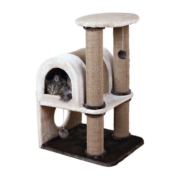 Fabriquée généralement en bois, corde, tissu ou d’autres fibres végétales, cette structure a été développée pour satisfaire les besoins d’escalade des chats ou de se faire les griffes. Elle est aussi indispensable pour stimuler leurs capacités innées d’observateur et de chasseur.